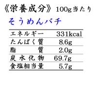 | 栄養成分 | めん100gあたり | エネルギー | 334kcal | | たんぱく質 | 8.7g | | 脂質 | 2.0g | | 炭水化物 | 70.3g | | ナトリウム | 2.2g | めん100gをゆでると約320gになります。 茹であげた100g当たりのナトリウムは267mg |