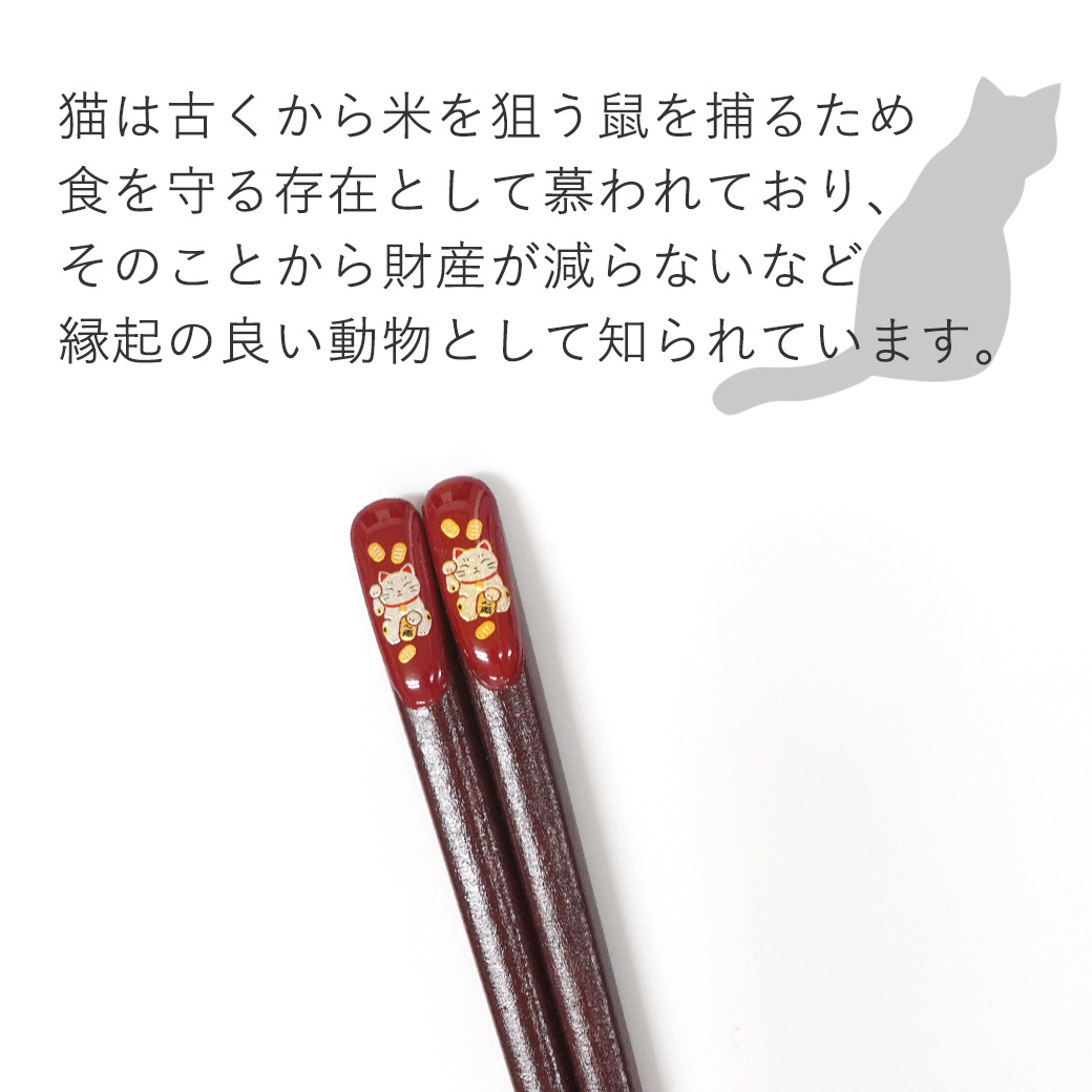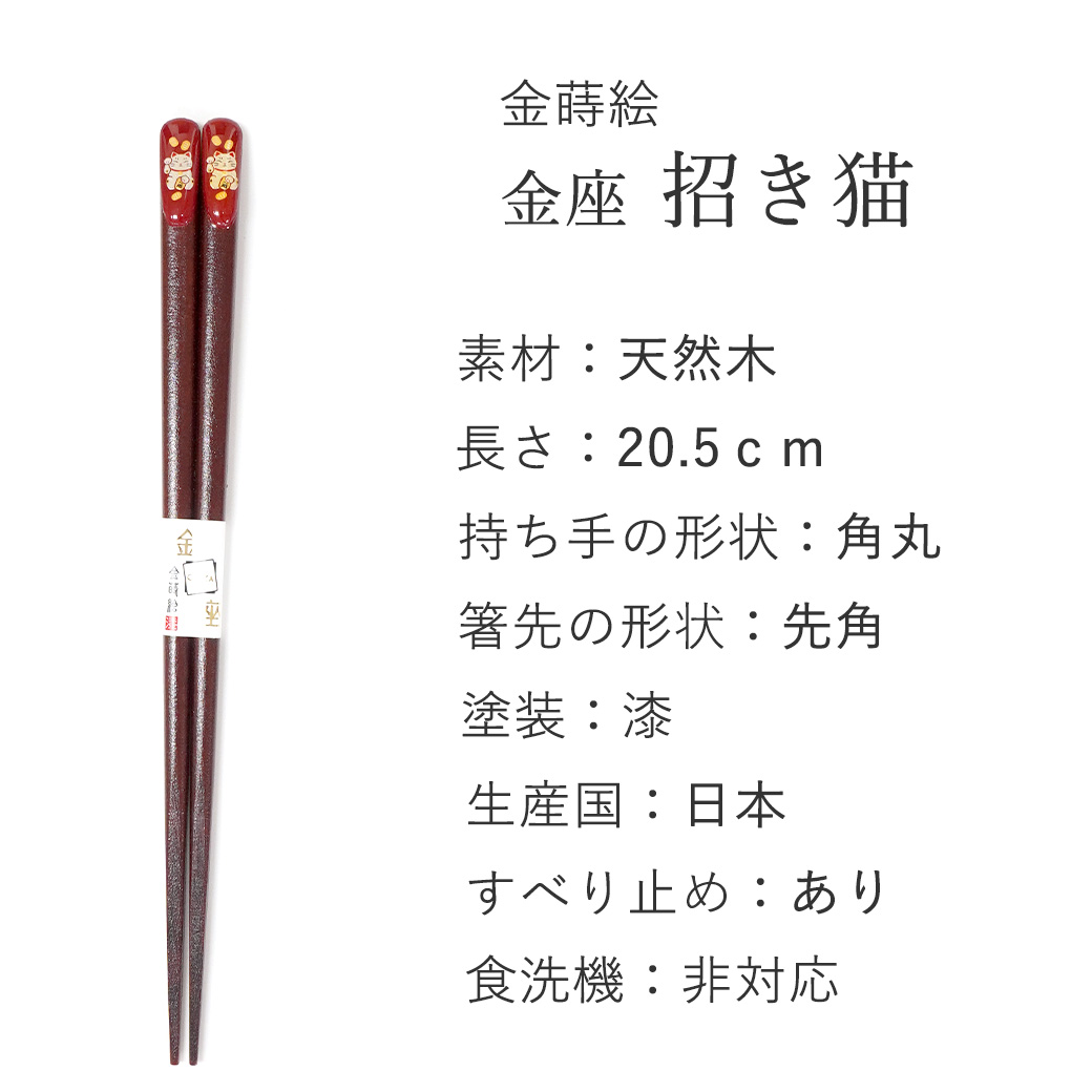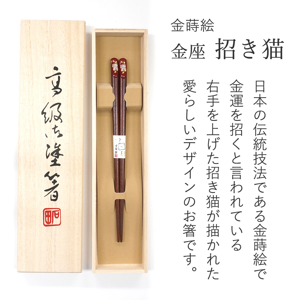 箸 金座 まねき猫 女性用 一膳 桐箱入り