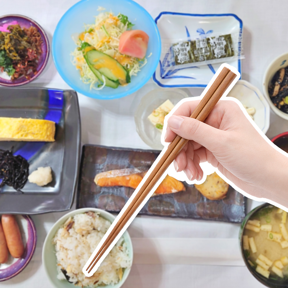 丸いお箸に比べてテーブルの上で転がりにくい形状のため、落とす心配がありません。
