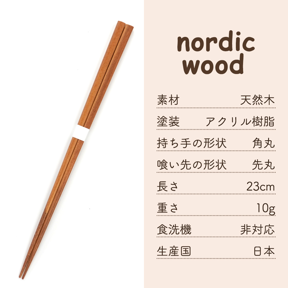 箸 北欧風 日本製 23cm 軽い nordic wood 単品 一膳 角丸 すべり止め 普段遣い お箸 おはし 天然木 転がらない 木のお箸 和食 洋食 中華 木製 来客用 男性 女性