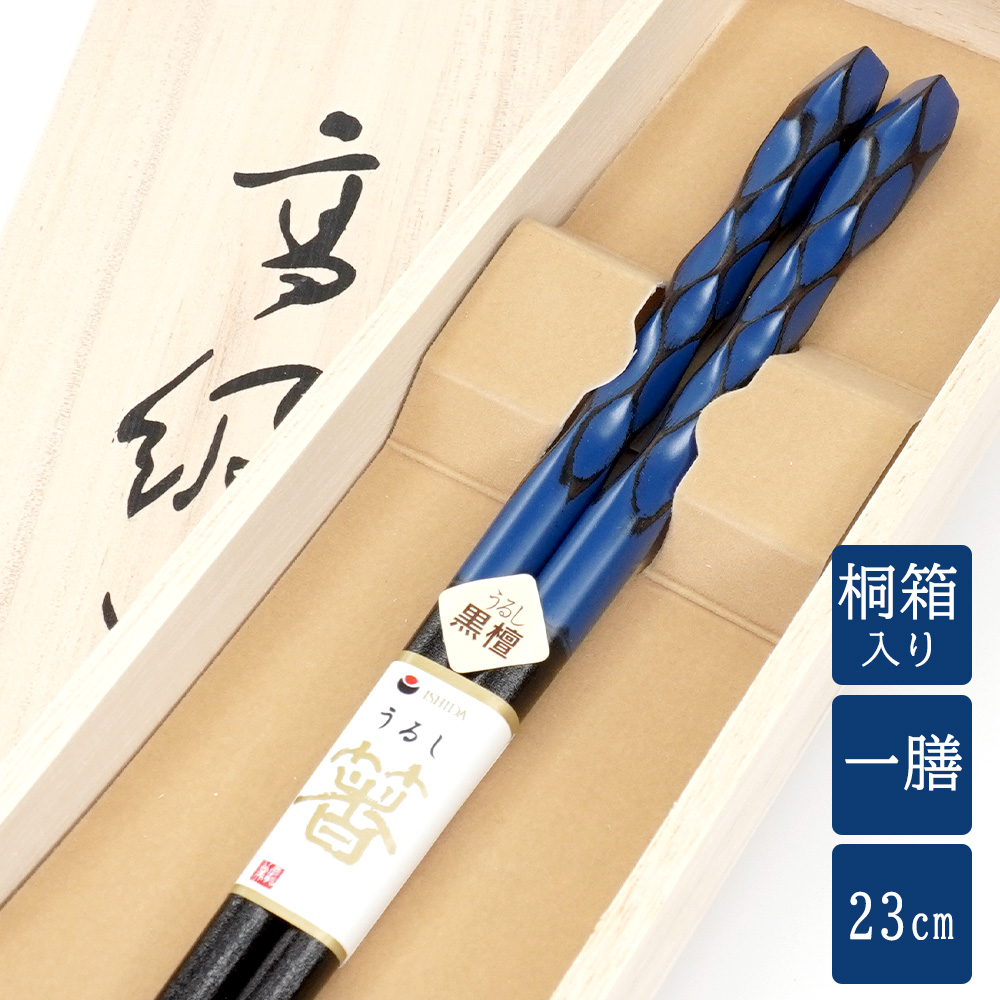 箸 鎌倉亀甲 黒檀 青 一膳 桐箱入り 父の日ギフト 還暦 古希 喜寿 米寿 引き出物 内祝いプレゼントお箸 若狭塗り箸