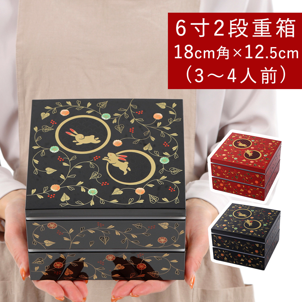 唐草模様にうさぎが描かれた、かわいい2段重箱です。