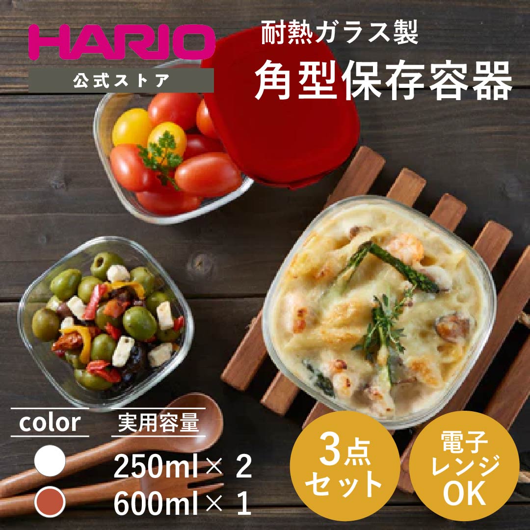 ハリオ 耐熱ガラス製保存容器 3個セット レンジ対応 オーブン対応 ホワイト レッド HARIO 公式 KST-2012
