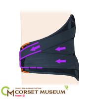 腰から背中を金属ステーが補強し、背骨の並びを整える腰痛ベルトです。腰と足に症状が出る腰椎すべり症に効果的です。