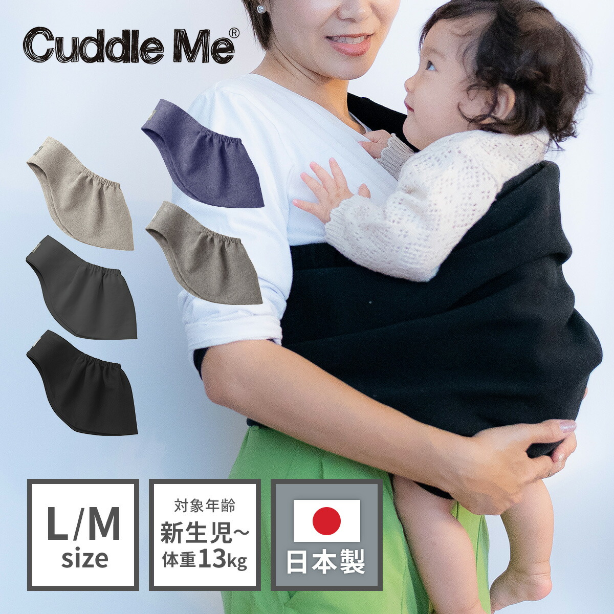 ゆりかご抱っこで究極の安心感!寝かし付けの達人赤ちゃんはスリングの中でものびのびしたい。だから、カドルミーは伸縮性のあるニット素材。いつでもリラックス、ストレスフリーの気持ちよさを実現しました。独自に開発したニットは、赤ちゃんが手足を自由に動かせる「伸縮性」と赤ちゃんをしっかり支える「復元力」を実現。ママのおなかの中の次に、気持ちいい場所ができました。MADE IN JAPANカドルミーは、編立てから縫製・仕上げまで日本の繊維産業を担う街「大阪」で、 優秀な職人さん達によって行われています。すべての素材は国産。Oeko-TEXの認証済み。軽量・コンパクト約400g。丸めてコンパクトになり、バッグの中でもかさばりません。使いたいときにさっと取り出せて便利です。お手入れが簡単洗濯機で洗えるから、いつでも清潔に保つことができます。#A001 #A002 #A003 #A004 #A005