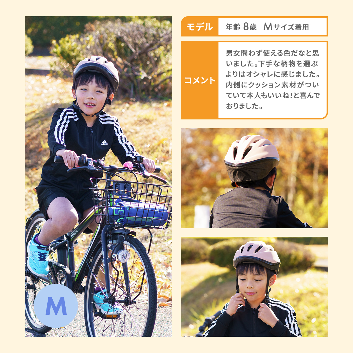 ダイヤル式のバックルでサイズ調整ができるので、成長に合わせて頭にしっかりフィットさせられます!