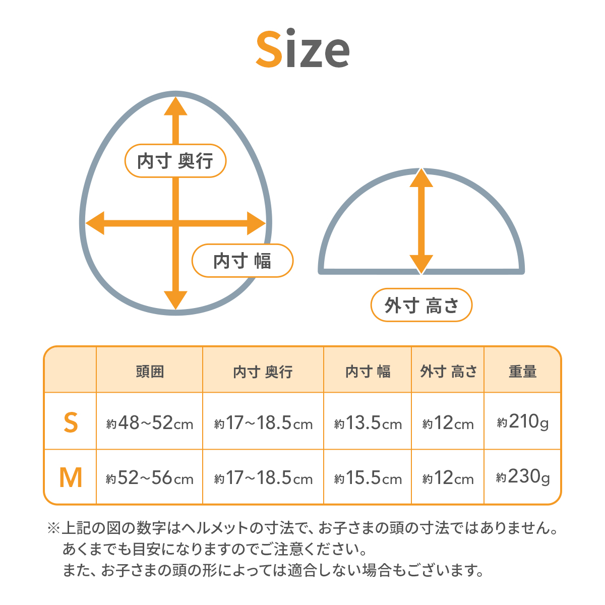 頭囲48〜52cm(サイズ調整機能付き)