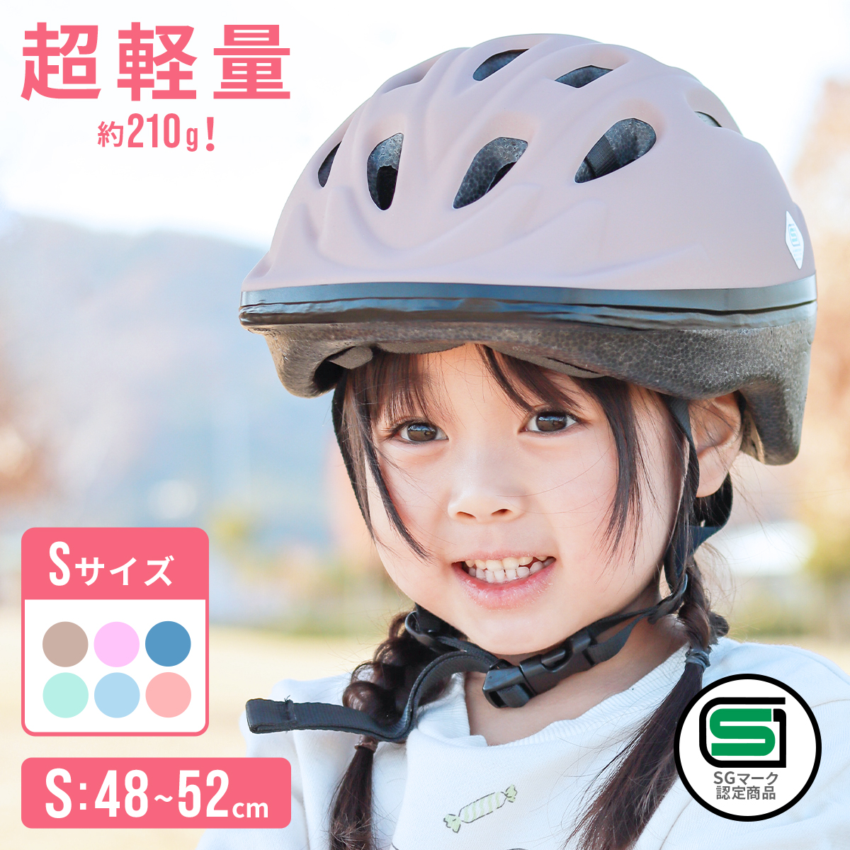 大切なお子様を守る!キッズヘルメットSサイズ☆お子様に嬉しい、とっても軽いヘルメット!ダイヤル式のバックルでサイズ調整ができるので、成長に合わせて頭にしっかりフィットさせられます!厳しい試験をクリアしたヘルメットなので、安心して使用できます!【子供のヘルメット着用は保護者の義務】13歳未満の子供が自転車に乗る場合(子供を乗せ自転車に同乗する場合も含む)、ヘルメットを着用させることが保護者の努力義務となりました。子供は頭骨が十分に形成されていないことに加え、身体の大きさに比べ頭部が重く、転倒すると頭部にケガをしやすいので、ヘルメットの着用は子供の頭を守るためにとても重要です。