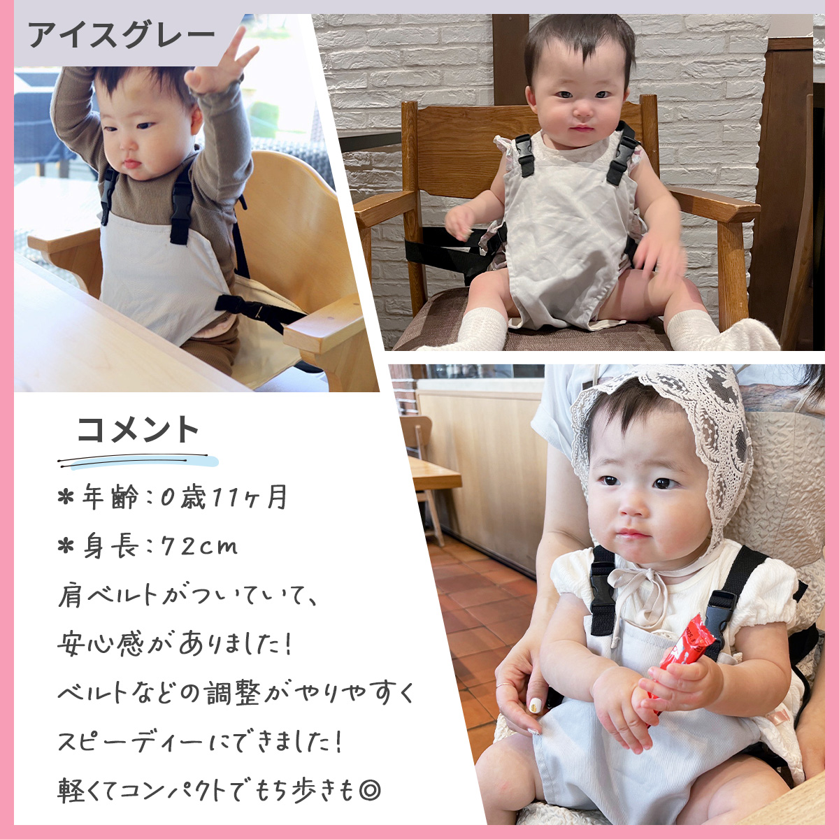| 対象年齢 | 腰がすわって〜3歳くらいまで |