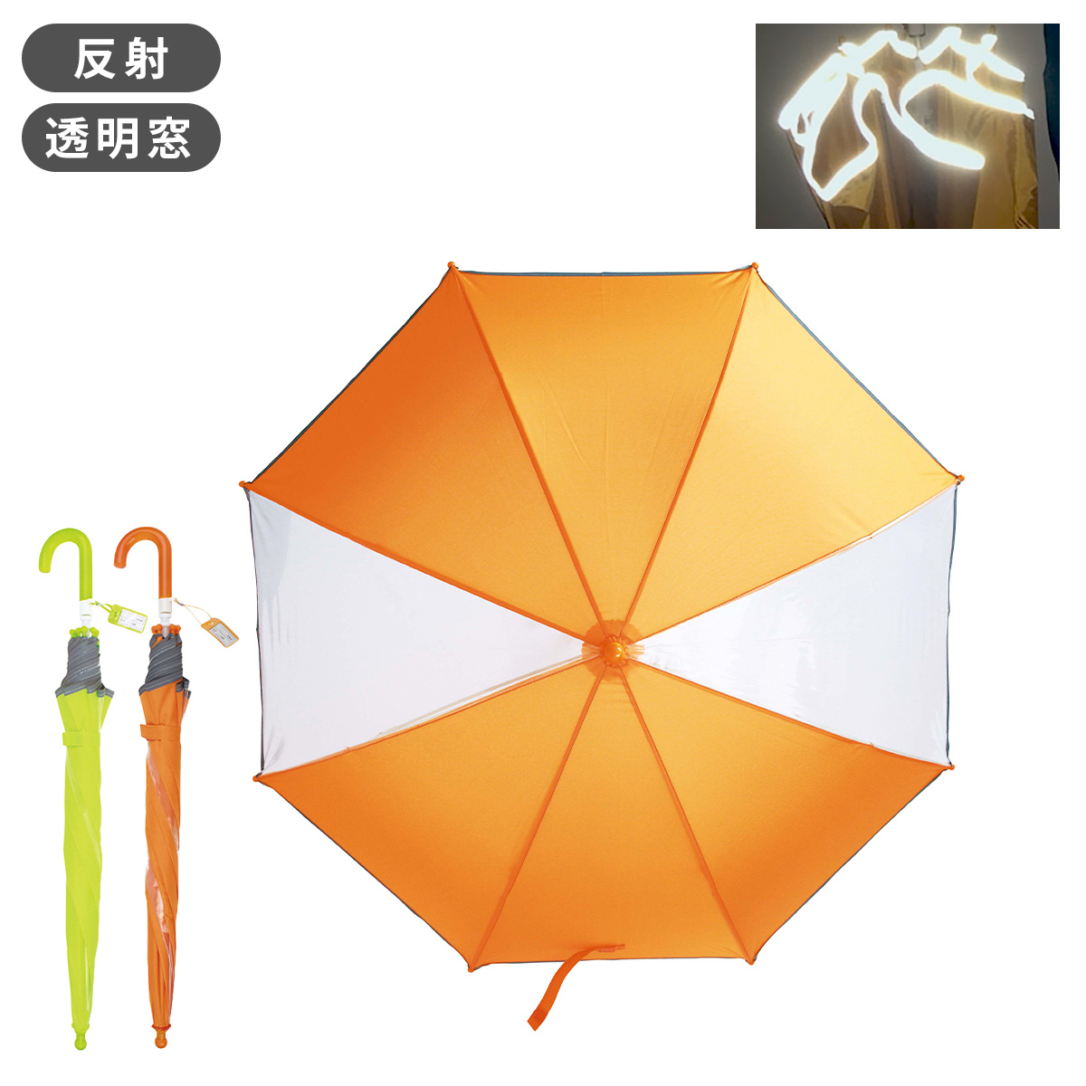 反射付き学童傘 傘 子供 子ども キッズ 男の子 女の子 反射テープ 反射 リフレクター 手開き式 かさ 透明窓 透明 安全 通学 雨傘