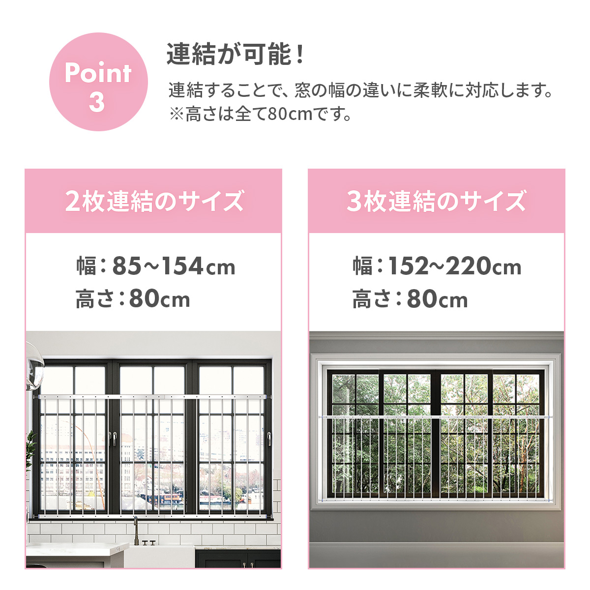 3枚連結|幅:152-220cm、高さ:80cm
