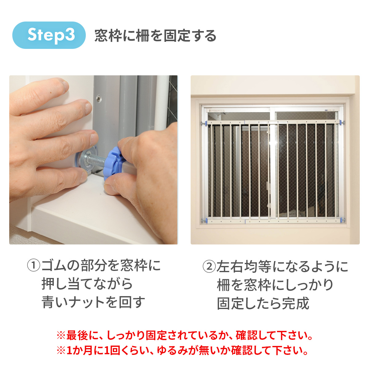 ・設置後は軽く押して動かないことを確認し、しっかり固定されていることを確かめてください。