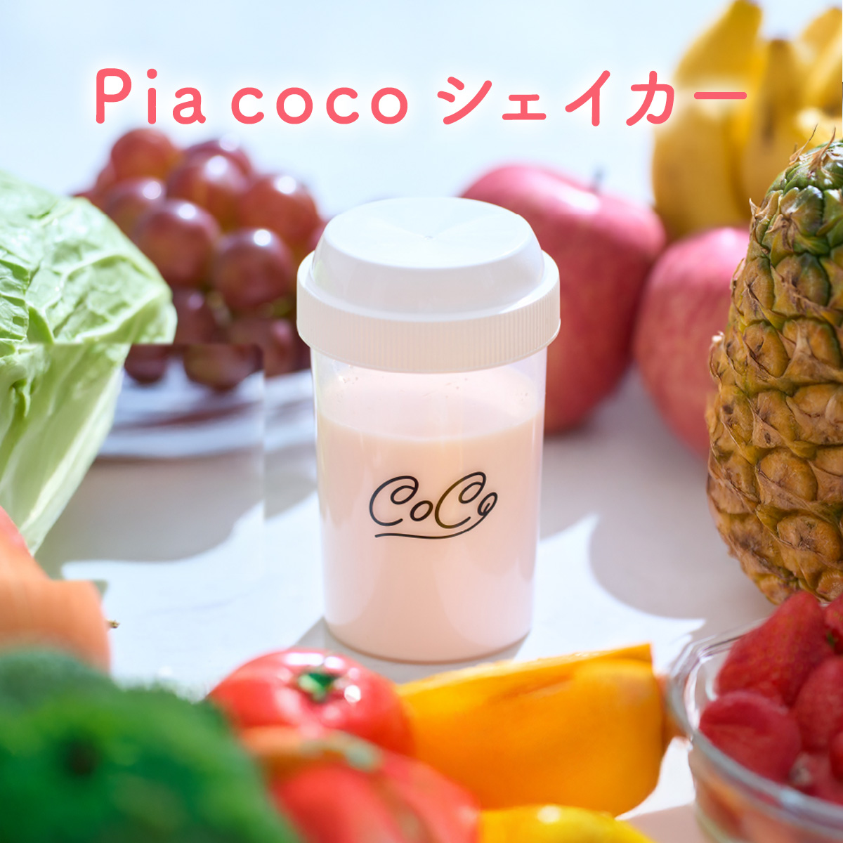 Pia coco専用シェイカー☆ Pia cocoは1杯で8gのたんぱく質と野菜11種・フルーツ11種の栄養を摂取できるキッズプロテインです。 さらには子どもの成長をサポートする、ビタミン・マグネシウム・カルシウムも含まれています。 成長期のお子様にとってバランスの良い栄養をしっかりと摂取することは、何よりも重要です。 Pia cocoは食べむらや好き嫌いなどで栄養バランスが偏りやすいお子様をサポートします。