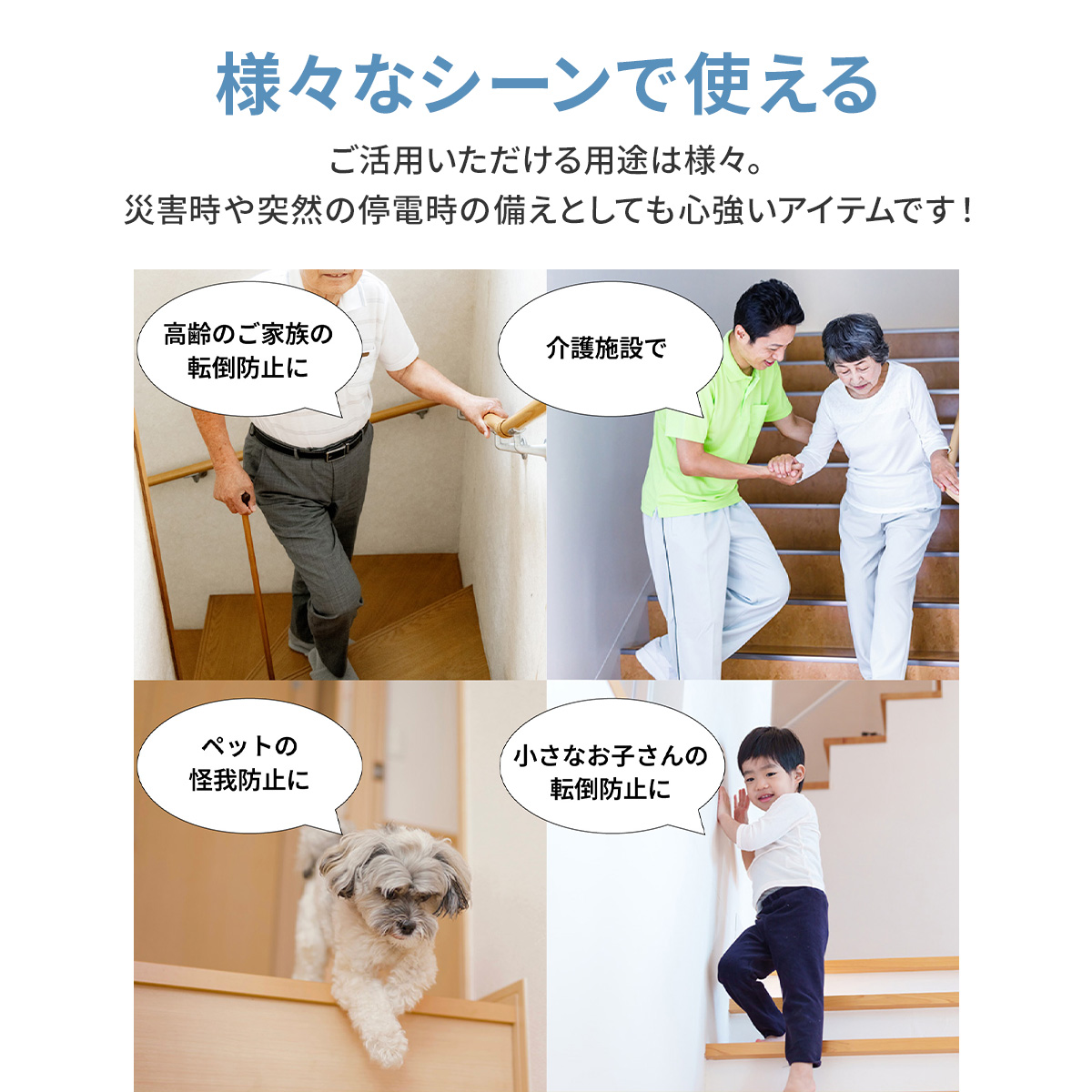 ・この製品は日光を蓄えて発光します。全く光がない場所では発光しませんので、昼間日光が当たる階段や少し電気を当ててからご使用ください。