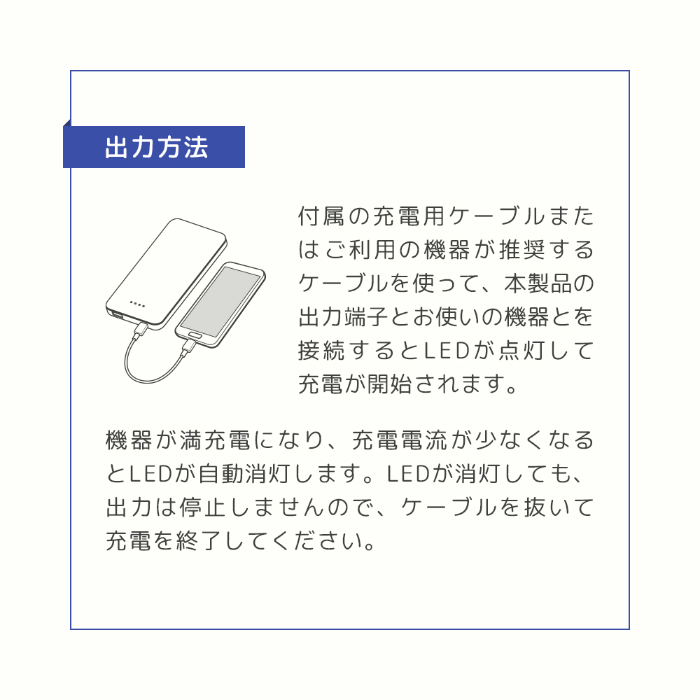 ・本製品の電池残量が少ないとき、内部温度が上昇したときは、出力電流が制限される場合があります。