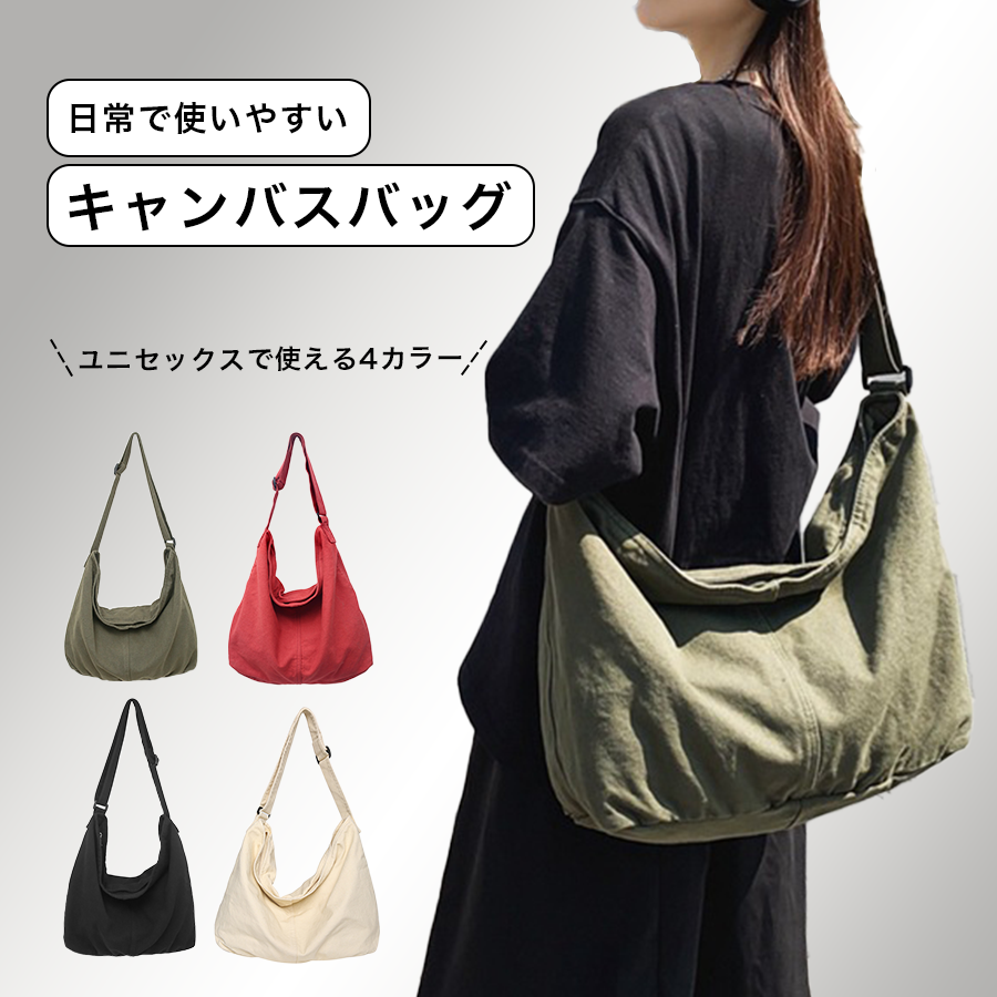 【ショルダーバッグ 大容量】ショルダーバッグ日常の必需品を大容量収納可能なキャンバスバックです。ショルダーバッグは高密度のキャンバス材質でとても丈夫で長く使えます。
