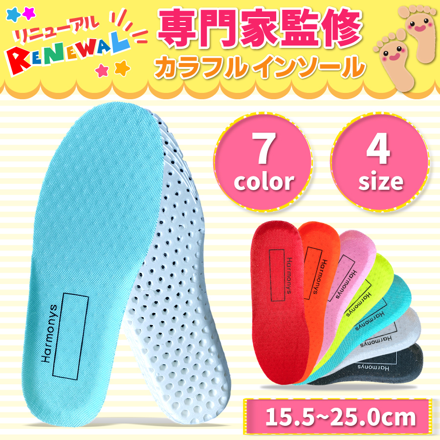インソール 中敷き 子供 キッズ ジュニア 衝撃吸収 レディース メンズ 立体 3D 土踏まず 中敷 通気 疲労軽減 Harmonys ハーモニーズ