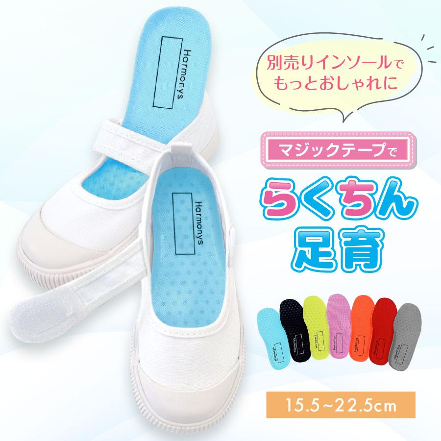 上履き 上靴 子供用 マジックテープ 女の子 男の子 白 抗菌 防臭 ブルー ピンク Harmonys ハーモニーズ 15.5cm〜24.5cm