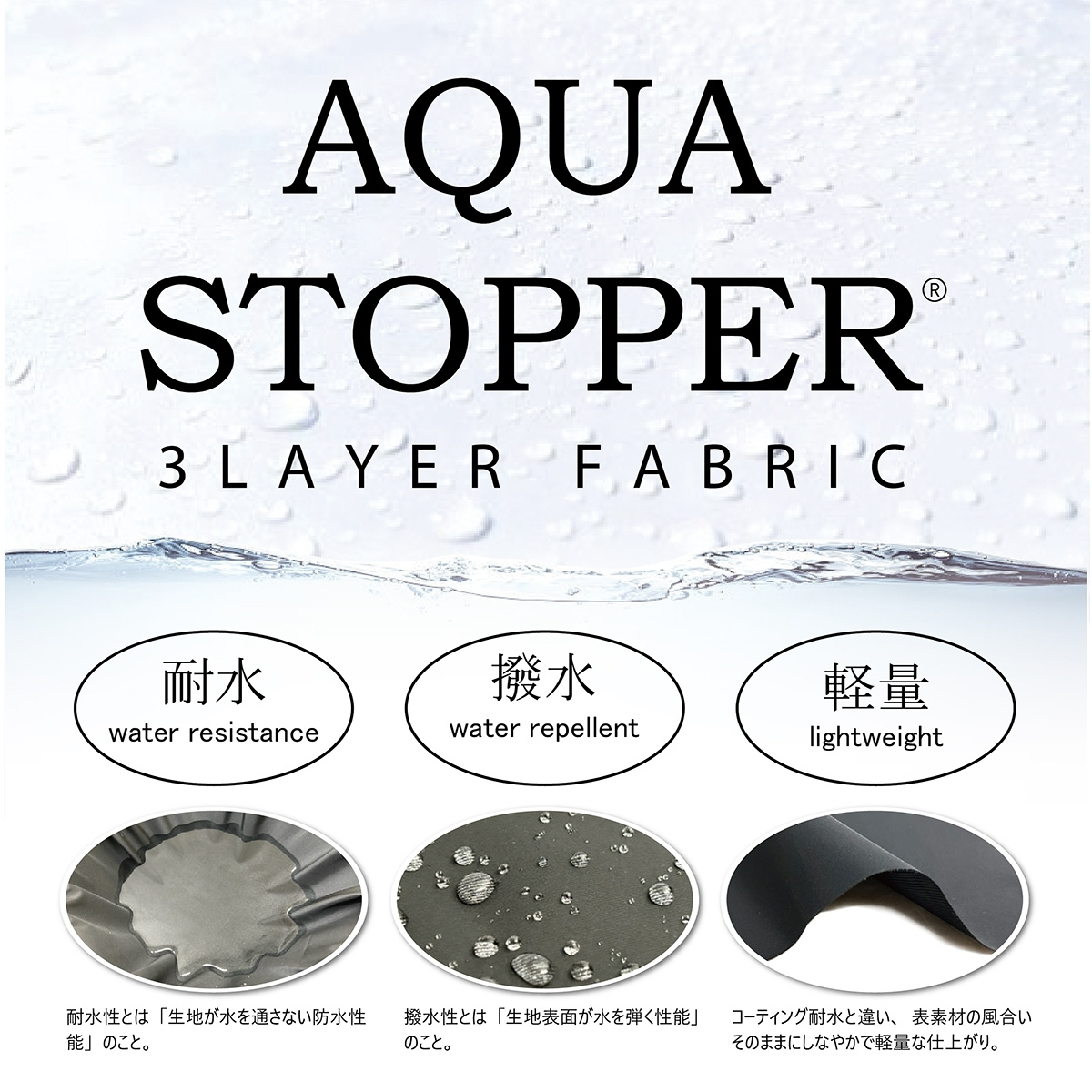 耐水・撥水・軽量素材(AQUA STOPPER/アクアストッパー)