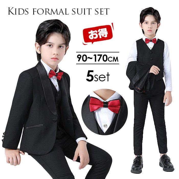 5点セット スーツ 男の子 子供 入学式 フォーマル 子供スーツ 子供服 七五三 卒業式 スーツ 蝶ネクタイ シャツ ジャケット ベスト パンツ 送料無料 超人気 紳士