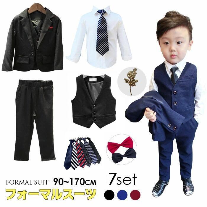 ネクタイあり 男の子スーツ 新入荷 子供 スーツ 7点セット フォーマル 送料無料 超人気 発表会 入学式 スーツ キッズ ジュニア 紳士服 七五三 こどもスーツ 子供