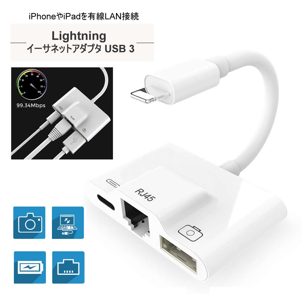 【SALE】【3,280円⇒1,980円】3in1 Lightning+イーサネットLAN+USB 有線ネットワーク USB 充電 アダプタ ケーブル テレワーク 在宅ワーク テレビ会議