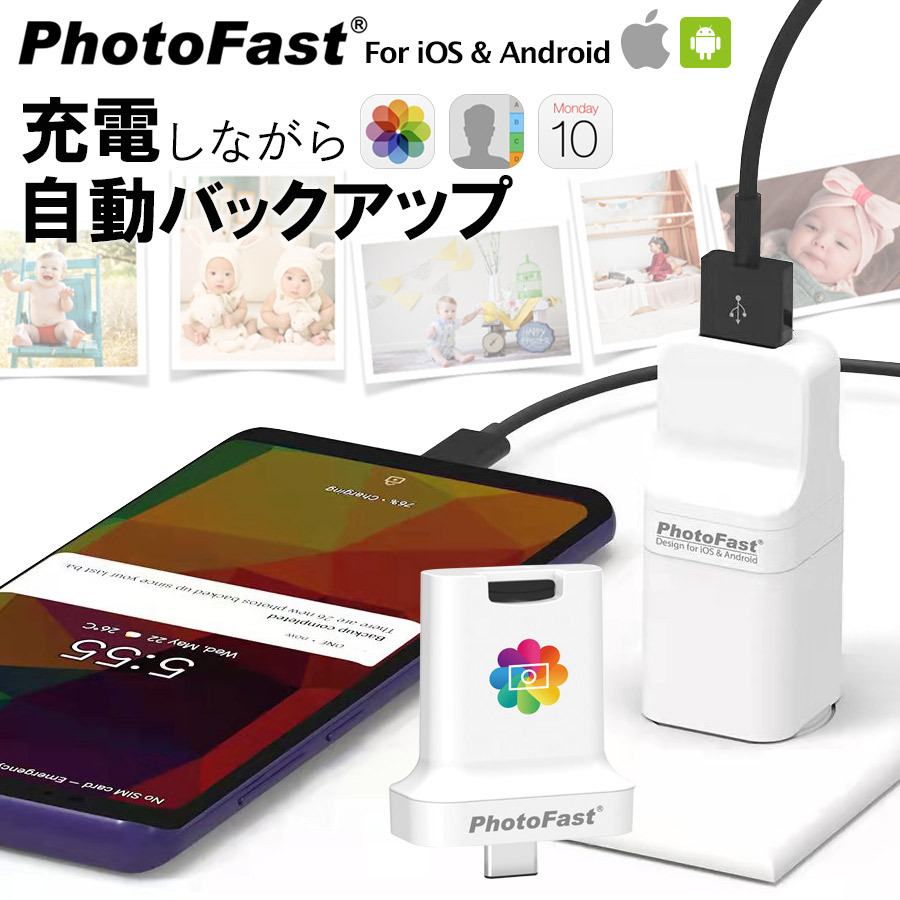 “充電するだけ”の簡単操作で写真・連絡先・予定などを自動でバックアップ!