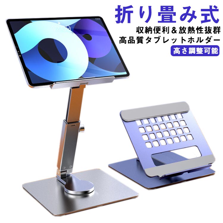 | 縦置き・横置きどちらにも対応できるアルミ製タブレットスタンド。【折り畳み式】【高さ調整可能】 【高さ角度調整可能&人間工学設計】人間工学に基づいて設計により、5cmから23cmまでお好みの角度&高さ自由にに調節できます。また、アーム部分が360度回転するので、他の人と簡単に画面を共有することができます。 会社・家の机と椅子の不便な高さから解放され、快適な角度で楽に作業できます。アイパッドスタンドを用いてタブレットに角度と高さをつけることで,視線が高くなり適正な姿勢に、肩や腰や首など負担を軽減らしてくれて、猫背などを有効に防止できます。 【収納便利&放熱性抜群】折りたたみ式のタブレットスタンドとして、省スペースに収納可能です。収納や持ち運びにも便利。自宅でも会社でも、どこでも便利に使えます。冷却しやすいアルミ合金スタンドに美しさと耐久性を兼ね備えた隙間を設けて、熱が籠りにくく、タブレットなどのデバイスの自然放熱を実現して、タブレットの運行スピードアップできます。 【安定性抜群&滑り止め保護ゴム付】タブレットに当たる部分にシリコンゴム製の滑り止めパッドが付いているので、滑りも倒れもなく安定的に使えます。 【高品質タブレットホルダー】高級感に溢れるアルミ合金採用を採用しており、そしてエッジ部分に丁寧に艶出し、滑らかで手に傷しません。回転軸がゆるくならないように強化され、耐久性が高くなります。高品質合金仕上げは、タブレットとの相性が非常によい。 | |
