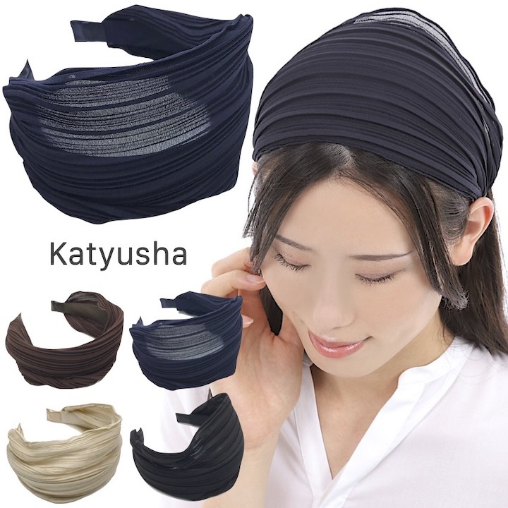 カチューシャ 幅広 大人 プリーツ加工 ブラウン ネイビー 紺 黒 ブラック 無地 シンプル 白髪隠し ヘアアクセサリー