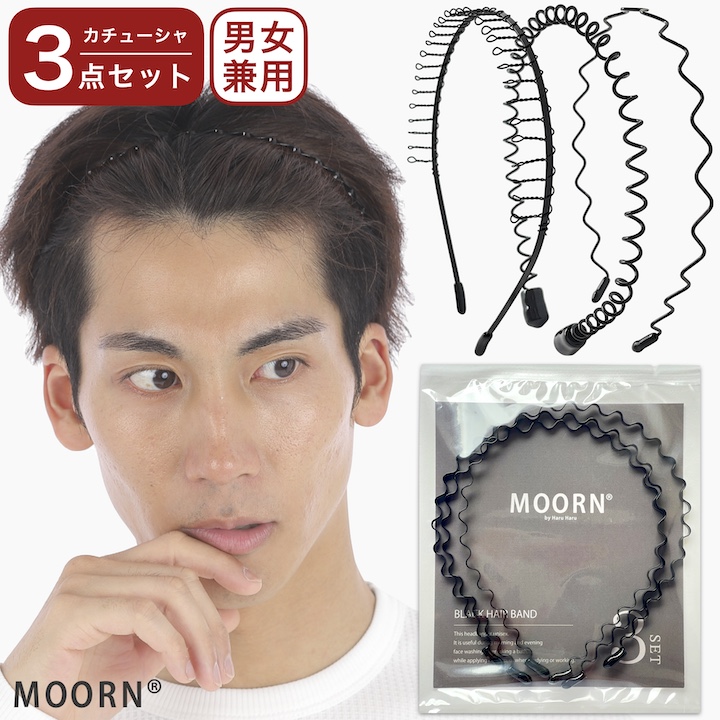 カチューシャ 3本セット メンズ レディース 黒 波 シンプル ワイヤー