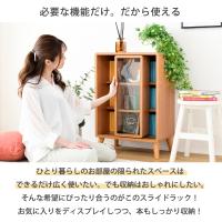 収納するものから設計されたデザインだから、コンパクトでも機能的。奥に収納したものもさっと取り出せる便利なスライドタイプの収納ラック。奥は本や参考書などに、手前のガラス扉収納はお気に入りの小物や写真などの収納に。丸みのある北欧風のデザインはとてもおしゃれで、ひとり暮らしのお部屋にもぴったりです。