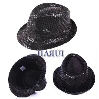 新入荷 スパンコール ハット 黒 トライバル タンゴ ジャズ 帽子