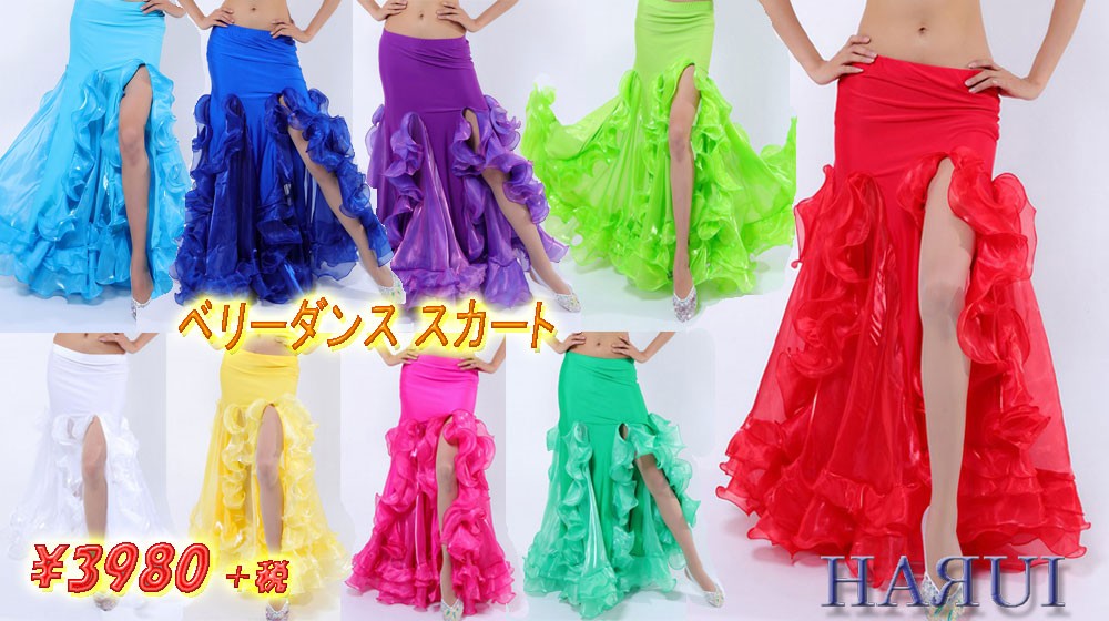 ベリーダンス オーガンジー フレアー スカート 衣装 9色
