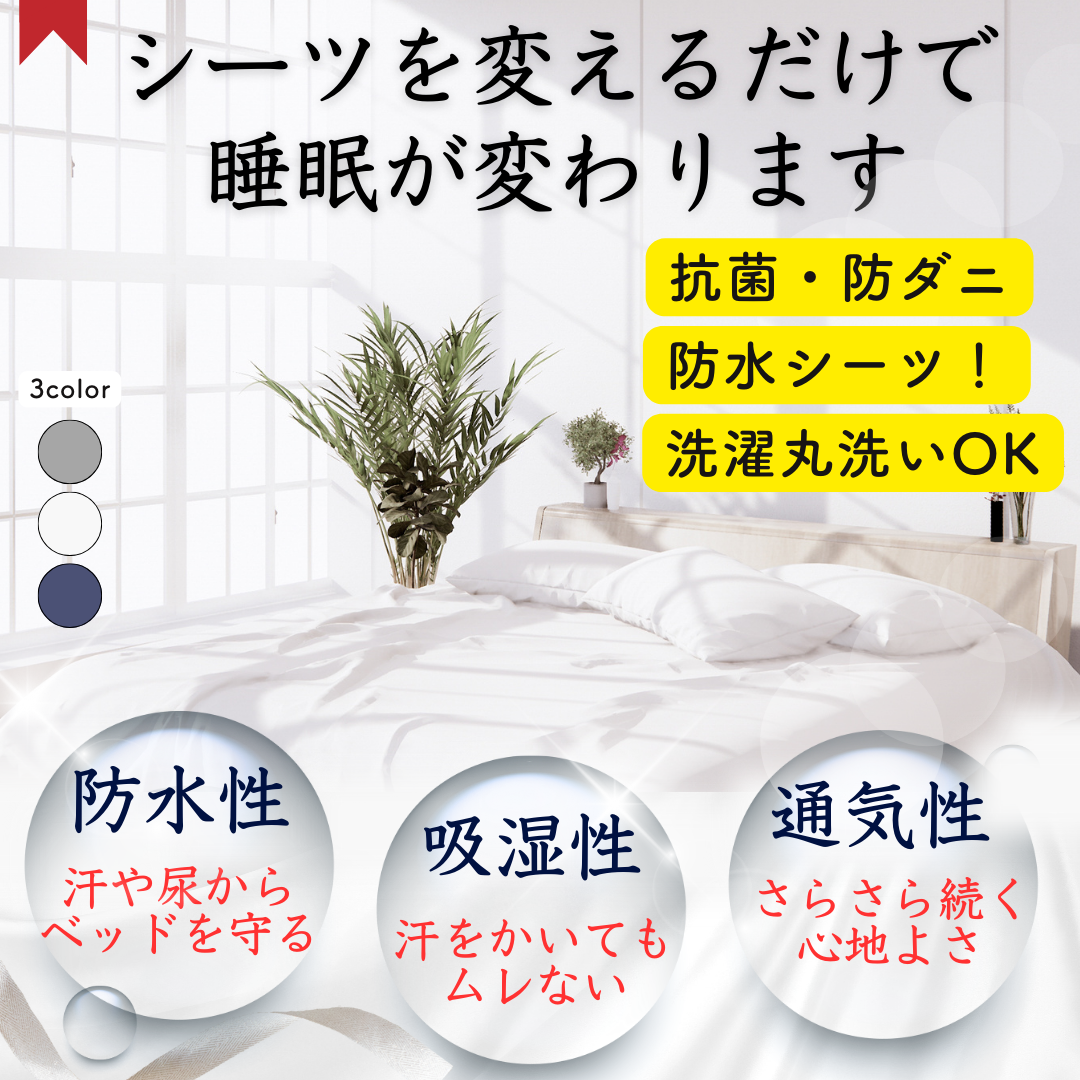 【完全防水!側面も防水です!】全面防水のため、汗や尿などの水分からマットレスをしっかり守ります。通気性が良いため、シーツが濡れていることによる、蒸れや冷えの心配もありません。快適にお過ごしいただけます。