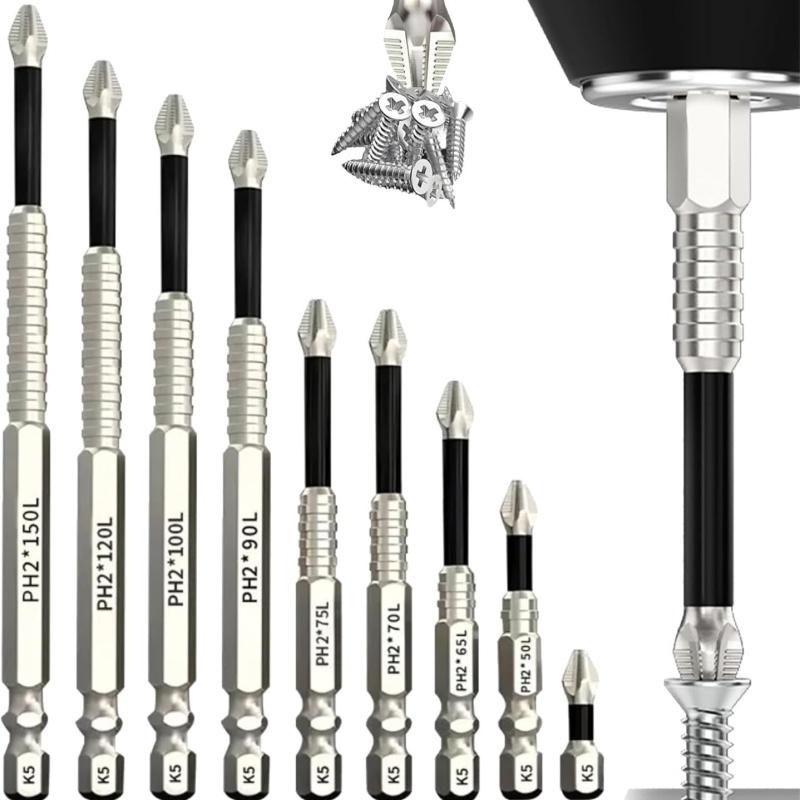 6PCS 9PCS強力磁気吸着滑り止め耐衝撃ビットセット 多サイズ ドライバーK5ビットセット プラス用 電動ドライバー対応 磁性 高硬度 DIYツール