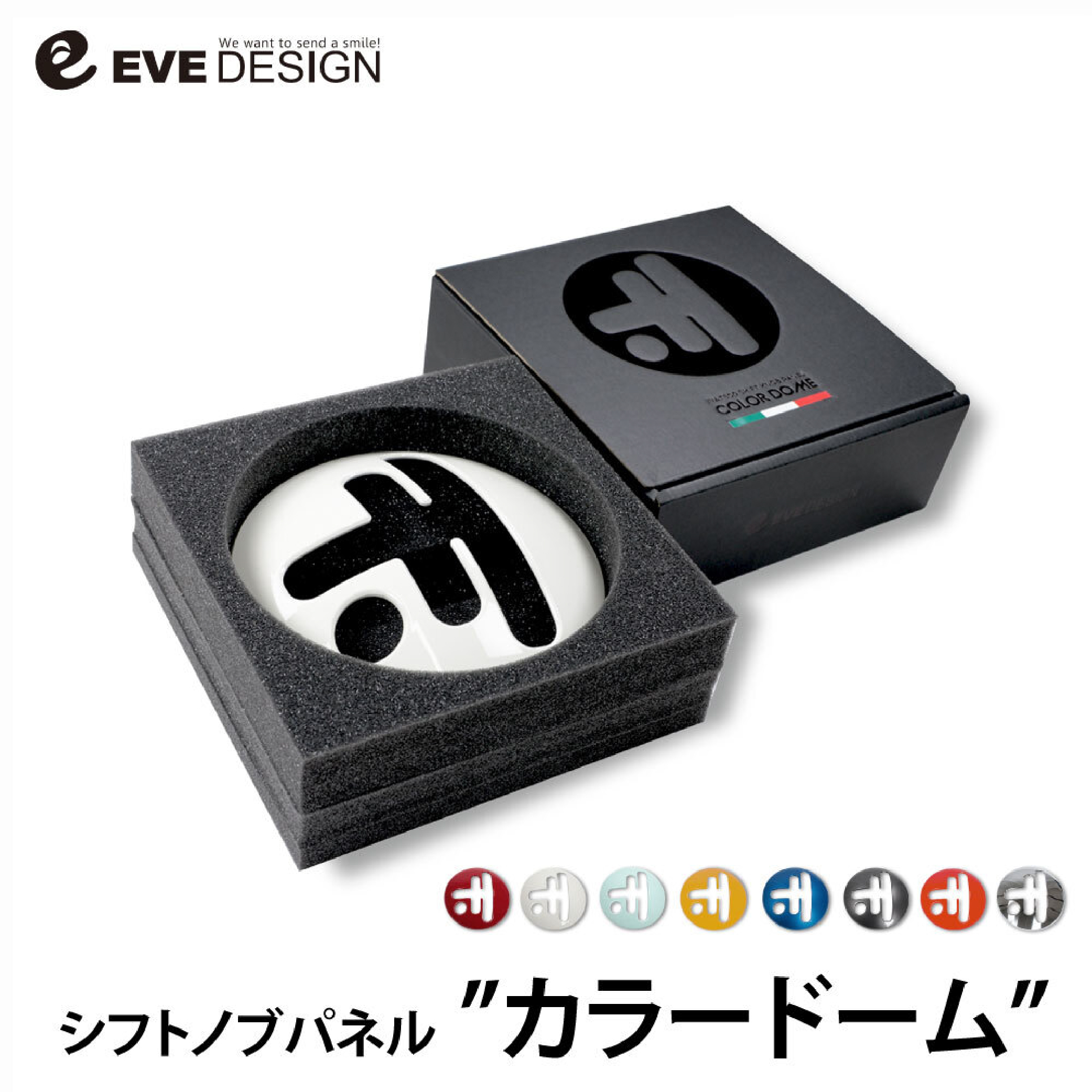 【イブデザイン オリジナル商品】フィアット500 AT車専用 シフトノブパネル「カラードーム」純正のシフトノブパネルをカラフルにドレスアップ!