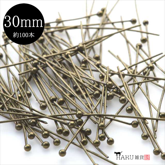 金古美 丸ピン 30mm 約100本 アンティークゴールド ピン 接続パーツ アクセサリー パーツ ハンドメイド 金具 イヤリング ネックレス ストラップ 素材 材料 P-086