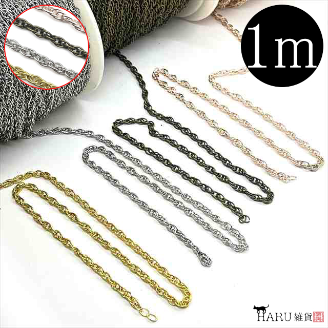 ・高級感、重量感があるエレガントなロープチェーンはアクセサリーやキーホルダーの必須パーツ!ネックレスやピアス、イヤリングにブレスレット、ペンダント等にも汎用性抜群のチェーンです。