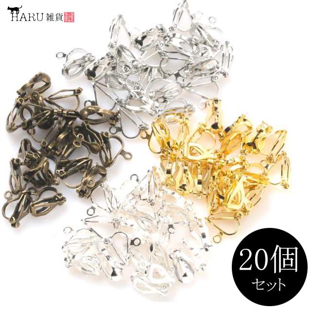 イヤリングパーツ 20個セット 小さめクリップ式 丸皿 カン付き ピアス パーツ ゴールド シルバー ホワイトシルバー アンティーク 金 銀 金古美 アクセサリー