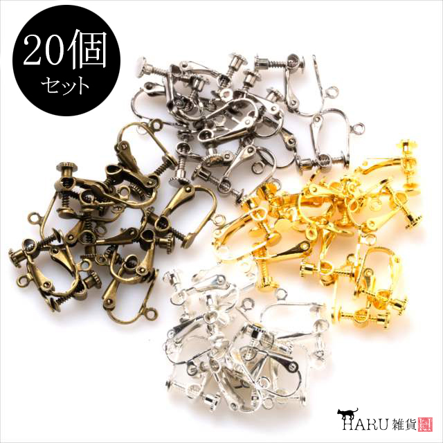 イヤリングパーツ 20個セット ネジバネ式 平皿 カン付き ハンドメイド 金具 ピアス パーツ アンティーク ゴールド シルバー ホワイトシルバー 金 銀 金古美