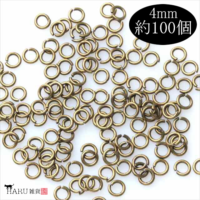 金古美 丸カン 4mm 約100個 アンティークゴールド 一重 マルカン まるかん アクセサリー パーツ 手芸 ハンドメイド 金具 デザイン ピアス ストラップ 素材 P-007