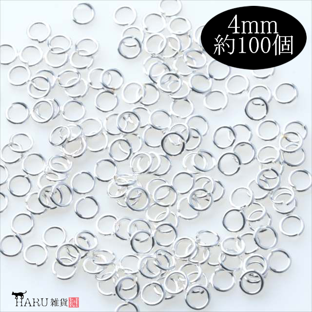 ホワイトシルバー 丸カン 4mm 約100個 銀 一重 マルカン まるかん アクセサリー パーツ ハンドメイド 金具 デザイン ネックレス ブレスレット ストラップ P-006