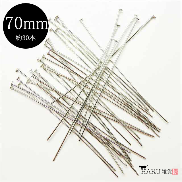 シルバー Tピン 70mm 約30本 銀 ピン ロングピン 接続パーツ アクセサリー パーツ 手芸 ハンドメイド 金具 ピアス イヤリング ネックレス ストラップ 連結 P-064