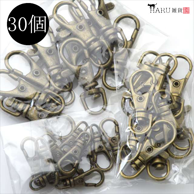 ナスカン 30個セット 23mm 35mm 37mm アンティーク 金古美 レバーナスカン 回転カン付き カニカン フック ハンドメイド アクセサリー パーツ V-044