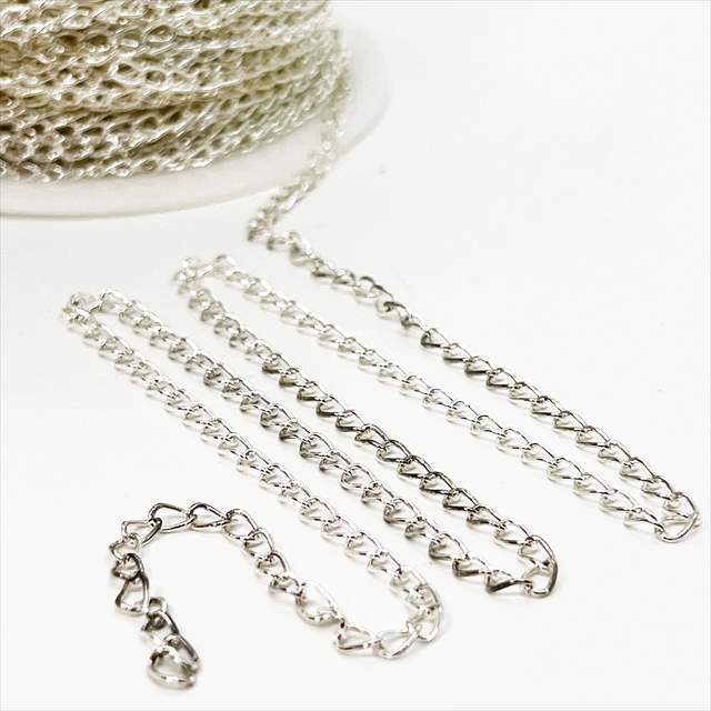・様々な場面で活躍のキヘイチェーンはハンドメイドアクセサリーの必須パーツ!ネックレスやピアス、ペンダントは勿論、カットしてネイルやレジンに埋め込んだりブローチ等の手作り雑貨にも汎用性抜群のチェーンです。