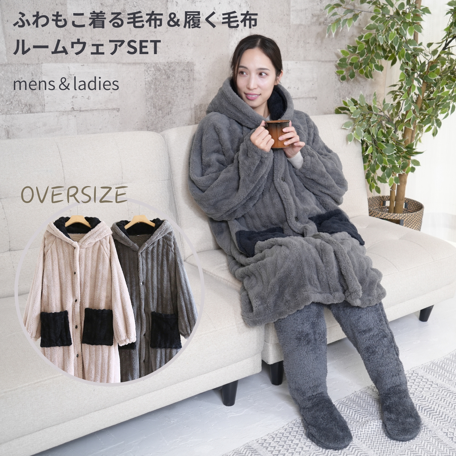 着る毛布 ガウン ルームウェア もこもこ かわいい ロング丈 レディース メンズ あったか レッグウォーマー ルームソックス セット