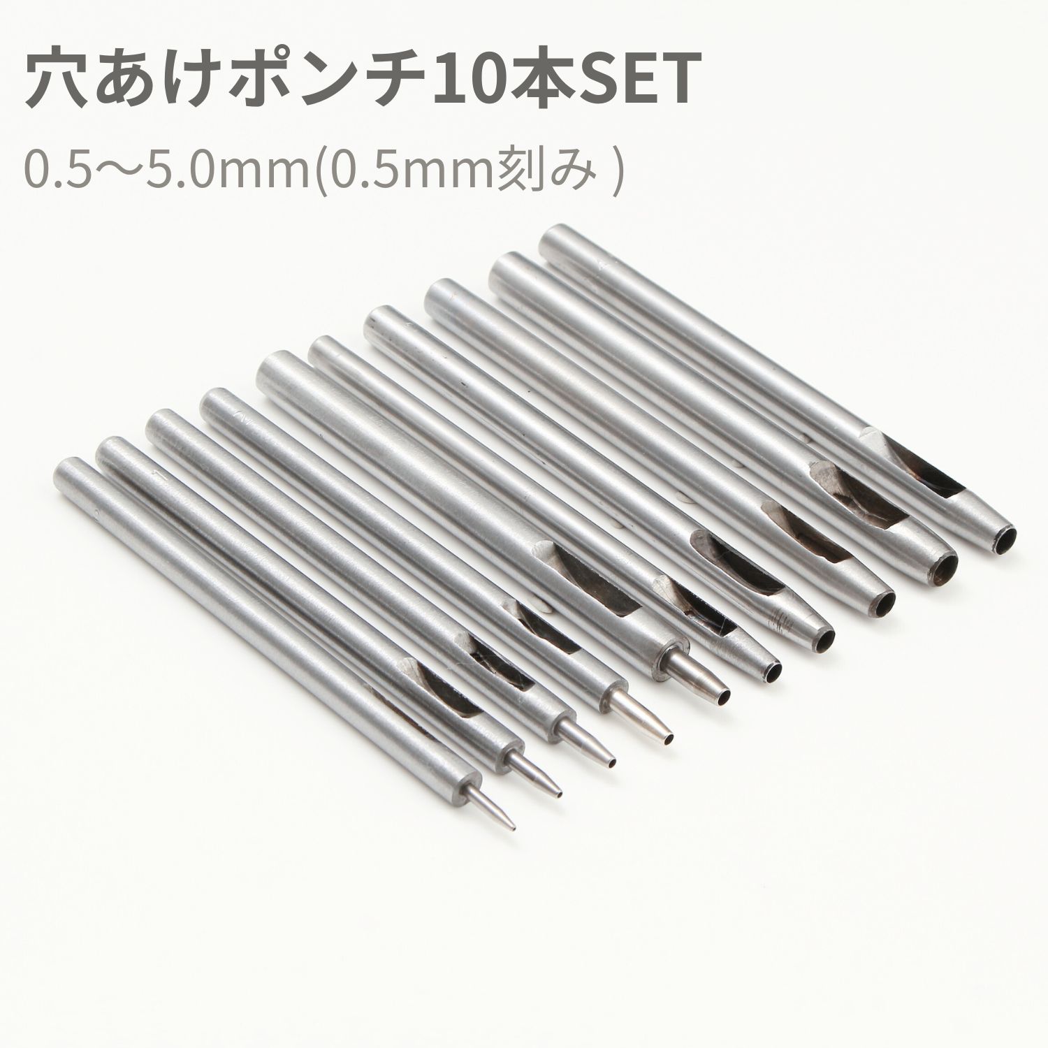 穴あけポンチ ハトメ抜き 革ポンチ レザークラフト 道具 皮ポンチ 革穴あけ レザーポンチ 10本セット 極小孔 0.5mm〜5.0mm