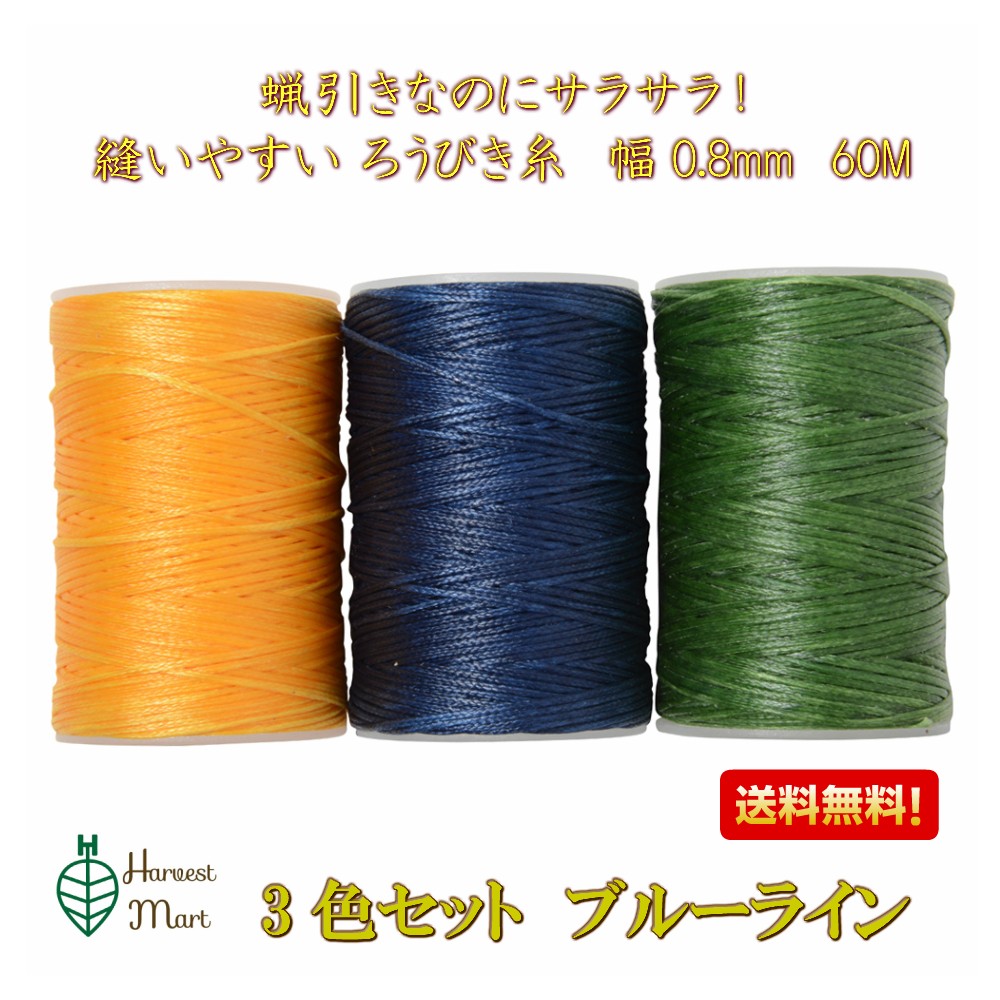 蝋引き糸 ロウ引き糸 蝋引き紐 60m ワックスコード 3個セット ブルー