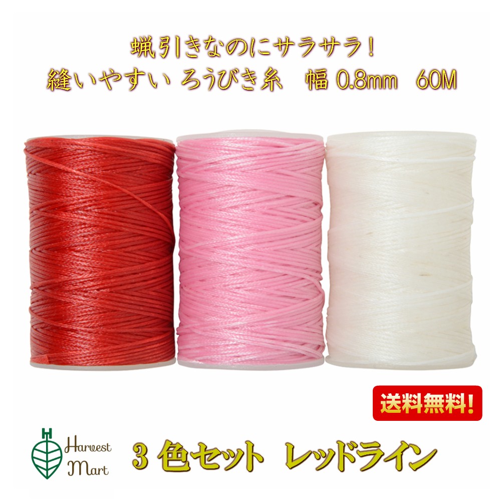 蝋引き糸 ロウ引き糸 蝋引き紐 マイクロマクラメ 60m ワックスコード 3個セット レッド