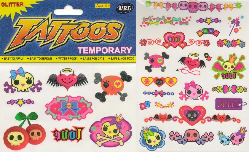 ゆうメール(郵便)なら送料無料☆タトゥ―シール2枚セット(ラブリースカル)ボディーステッカー